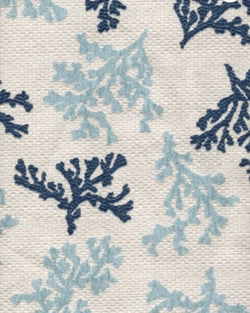 Stanley ChairLight & Dark Blue Reef Print Armless Barrel Chair Brand = Stanley Chair Fabric = Cosa Marine Condition = New Material = Polyester Width ...