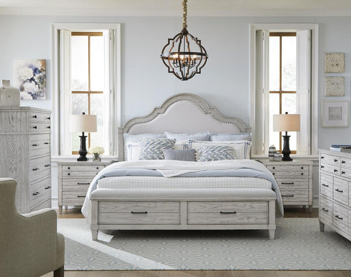 American WoodcraftersGray & White Upholstered King Complete Bed Set Bed Sizes = King Brand = American Woodcrafters Collections = Dunescapes Condition = New Wi...