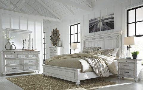 AshleyWhitewash King Panel Bed Set Bed Sizes = King Brand = Ashley Collections = Kanwyn Width = 85" W Depth = 84" D Height = 68" H Item Number:...