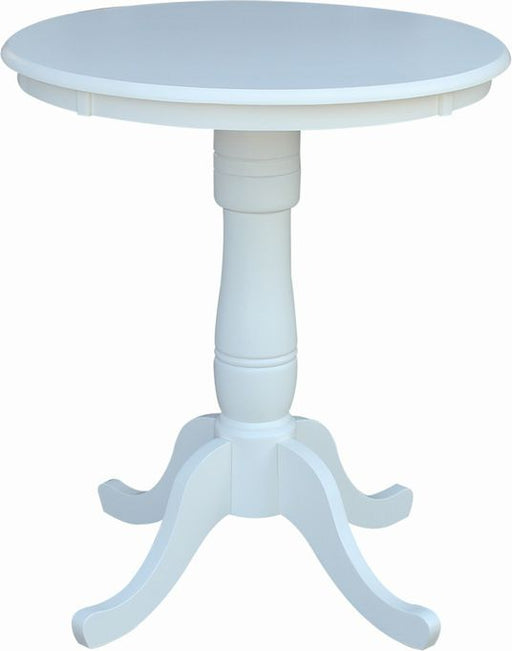 John ThomasPure White Pedestal Dining Table Brand = John Thomas Collections = Dining Essentials Condition = New Width = 30" W Depth = 30" D Shape = Rou...