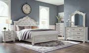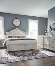 Antique White Upholstered King Complete Panel Bed Set