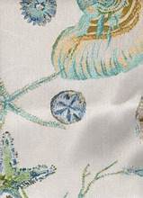 Seafoam Green, Blue & Tan Shell/Sand Dollar Print Armless Barrel Chair